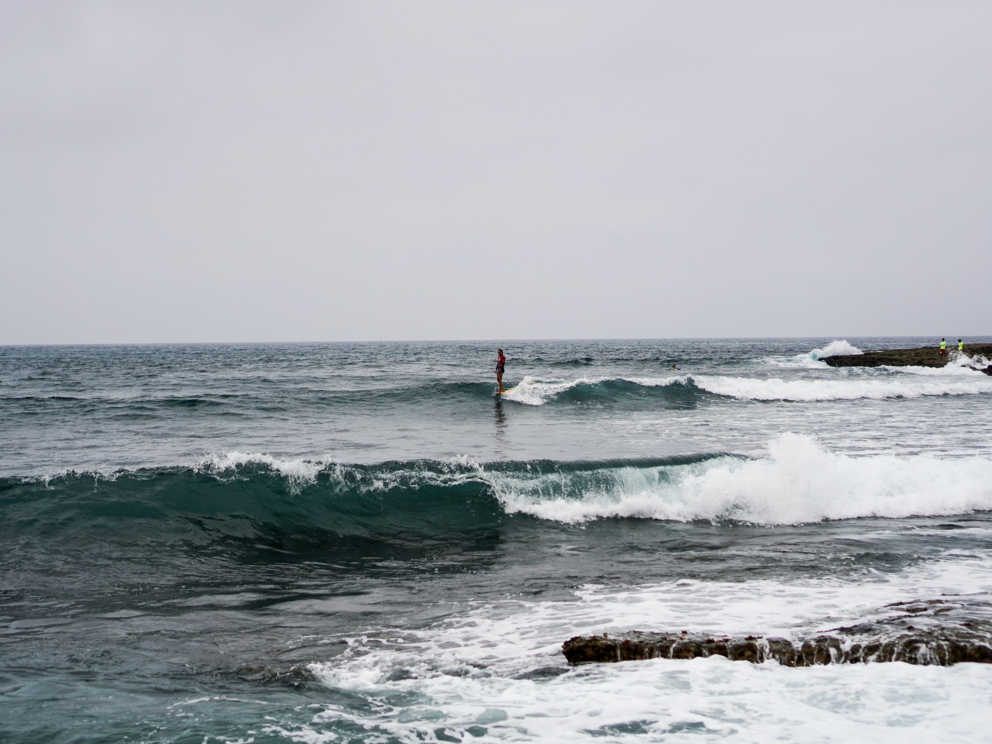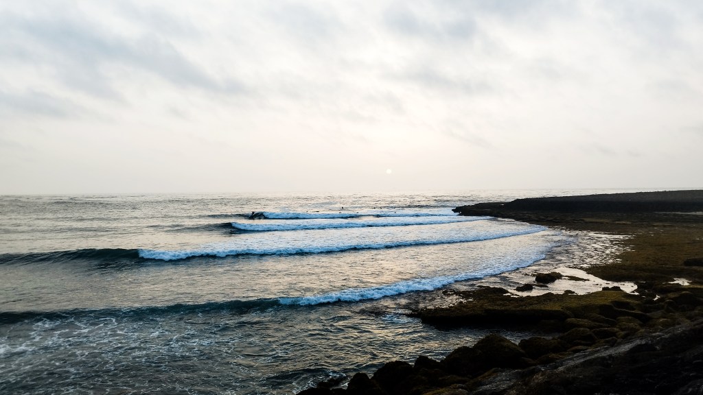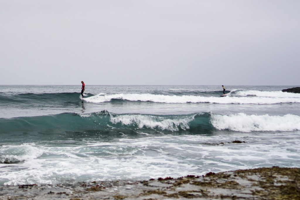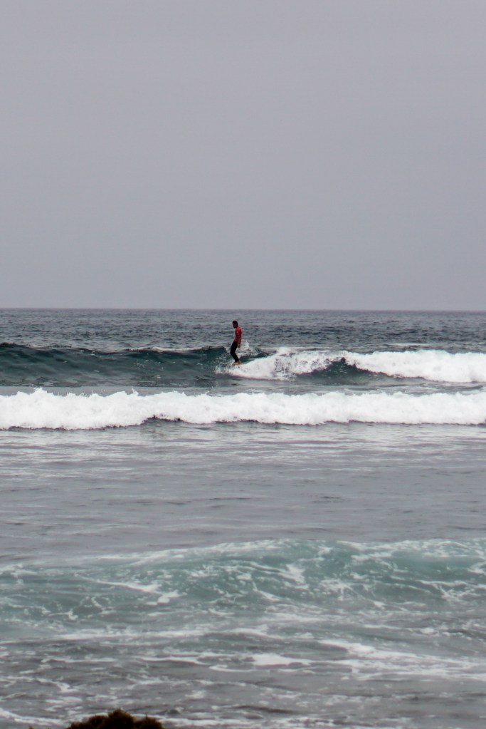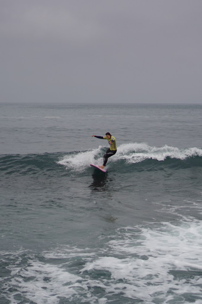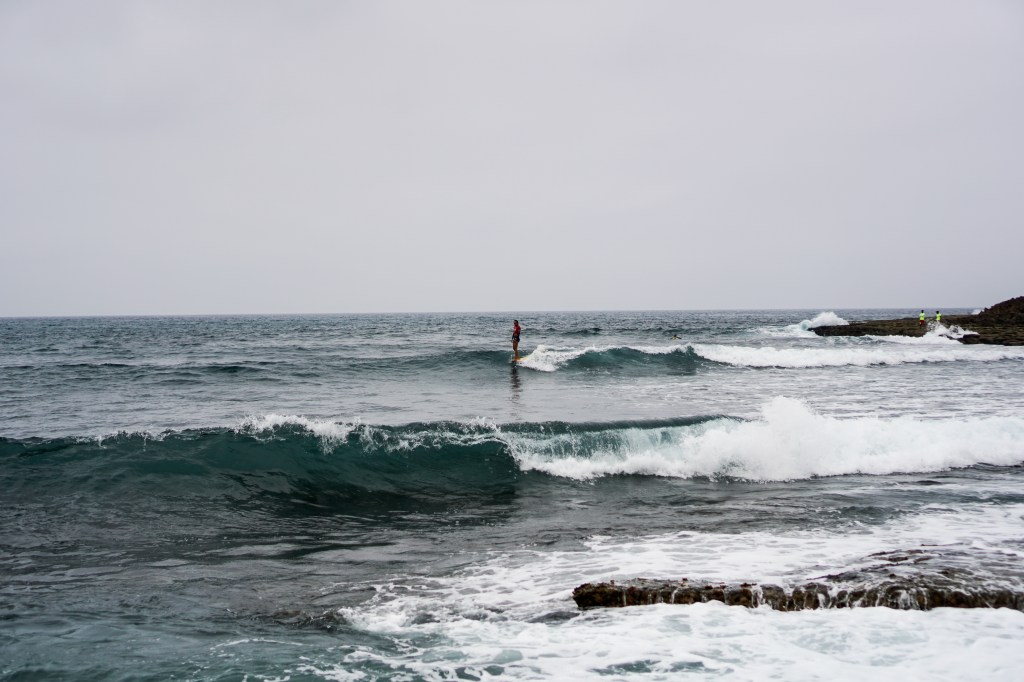 Dopo la magia del primo giorno, gli atleti si svegliano sotto un cielo grigio e con una leggera brezza da nord-ovest. Lo swell dei giorni precedenti ha perso forza e qualità: le onde sono leggermente più choppy, e tra una serie e l’altra bisogna aspettare a lungo. È una giornata che richiede ancora una volta pazienza e un’attenta lettura del mare per individuare le onde giuste, quelle che permettono punteggi elevati.