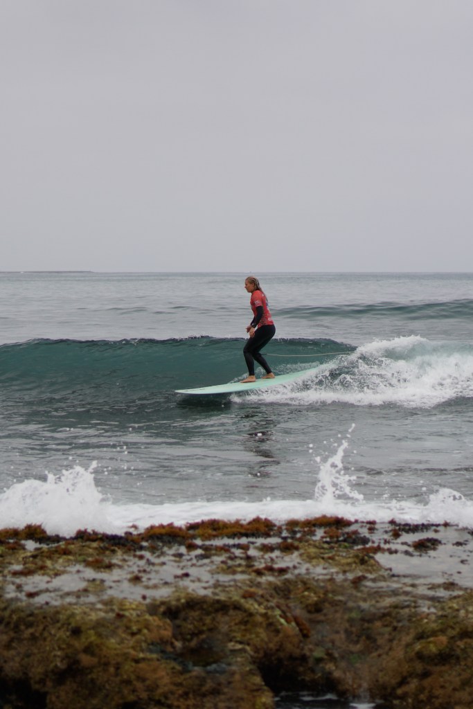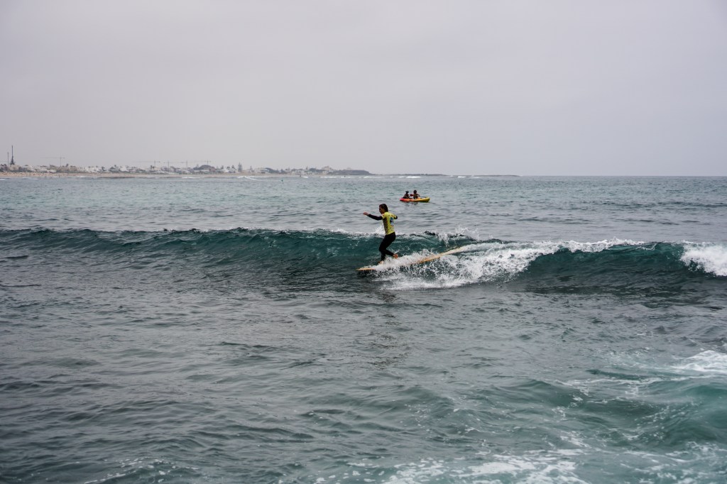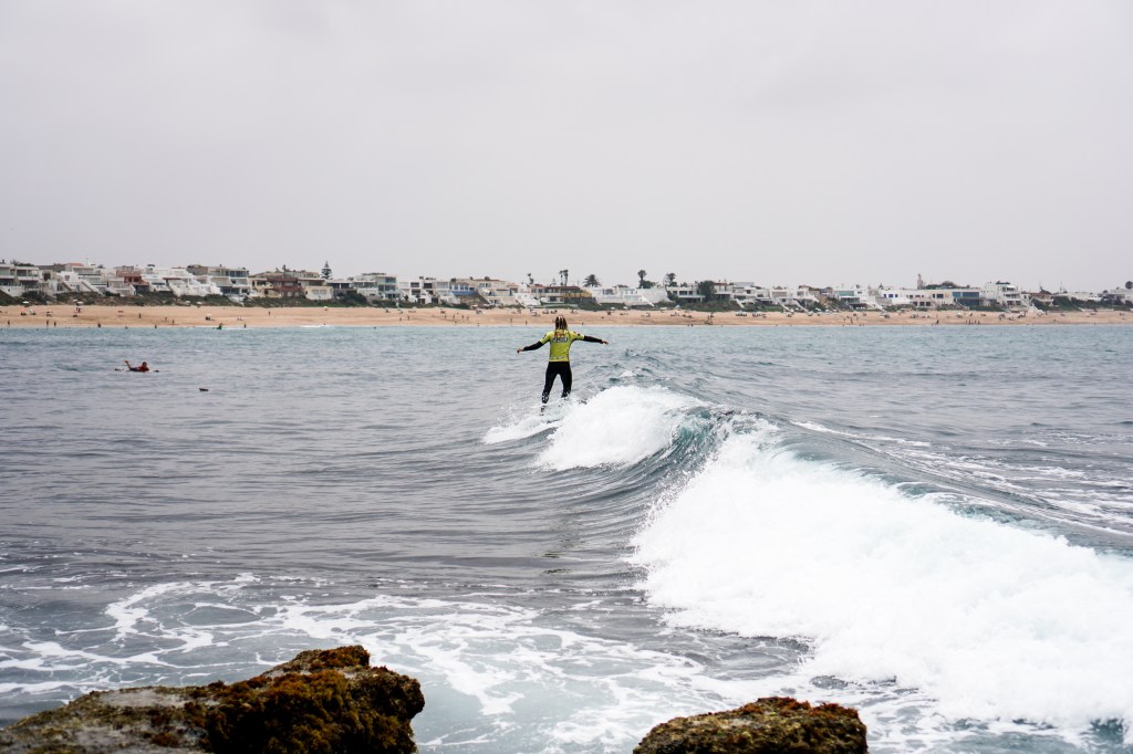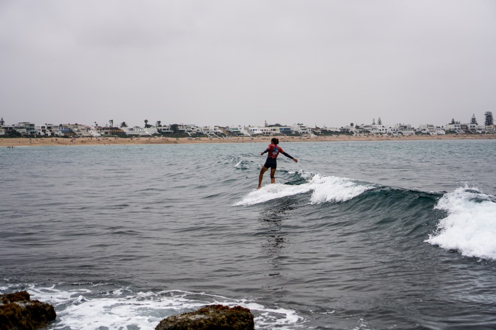 A seguire, si svolgono le heat femminili. Nonostante l’alta marea, Bouznika Right continua a offrire onde lunghe e pulite, anche se le serie si fanno sempre più aspettare. Con pareti d’onda più morbide, si distinguono le surfiste più tecniche.