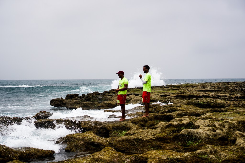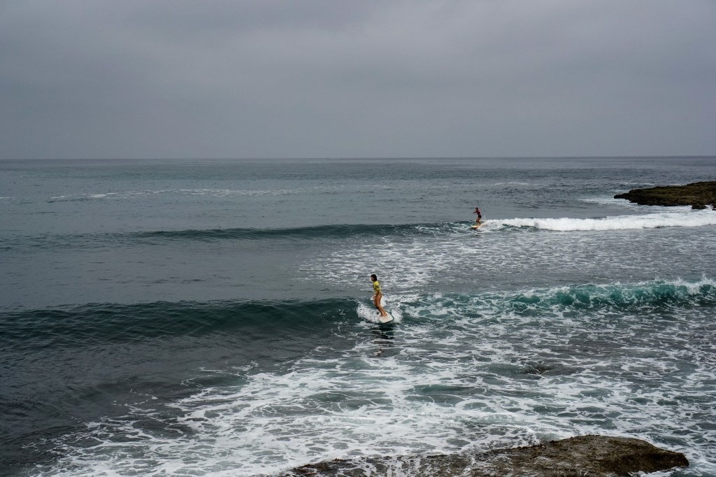After the magic of day one, the athletes wake under a gray sky with a light northwest breeze. The previous swell has weakened and waves are choppier, with long waits between sets. It’s a day that again demands patience and sharp ocean reading to find the right waves that yield high scores.