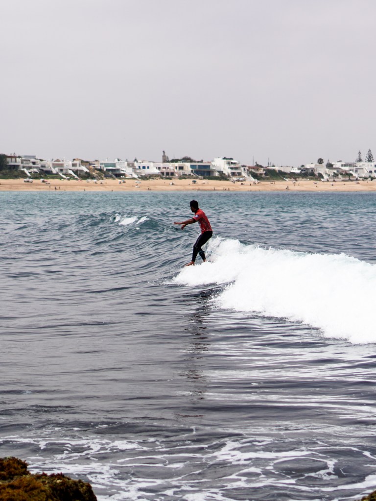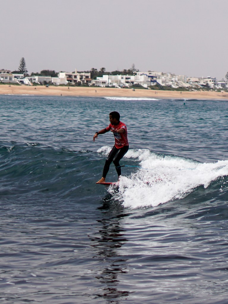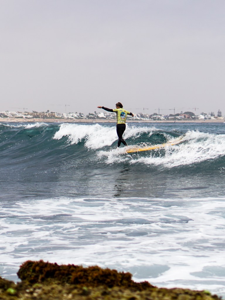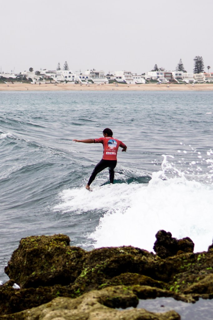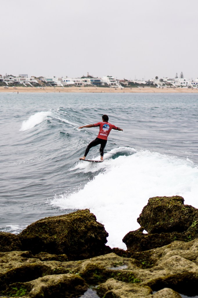 Giornata di finali a Bouznika. Il pubblico a terra è carico, le onde – seppur piccole – sono pulite e ben formate: perfette per il longboard. E in acqua, lo spettacolo non manca.